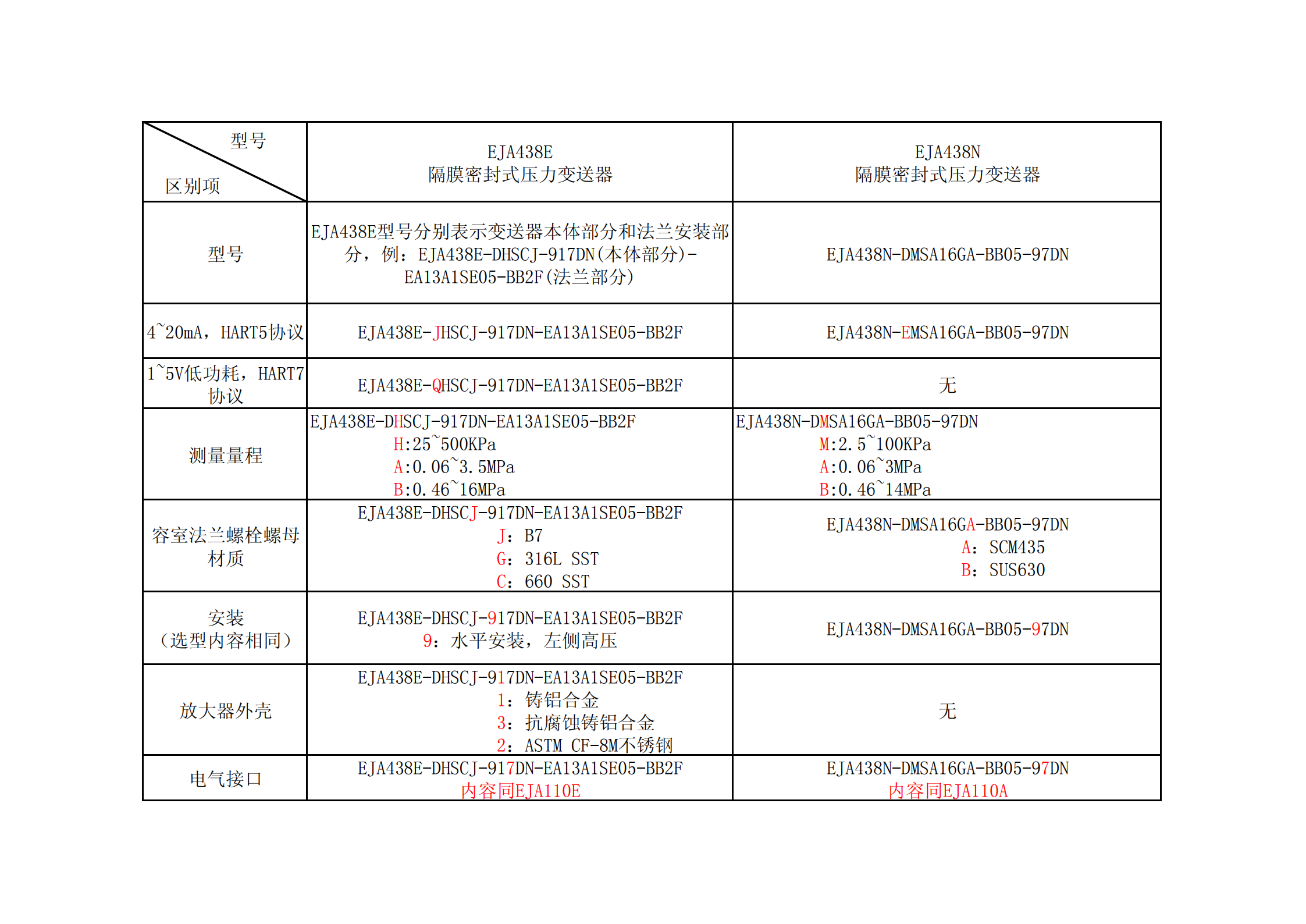 1、變送器量程有變化的型號:差壓變送器EJA110E,絕壓變送器EJA310E,壓力變送器 EJA430E,隔膜密封式壓力變送器EJA438E,微笑流量變送器EJA115E |