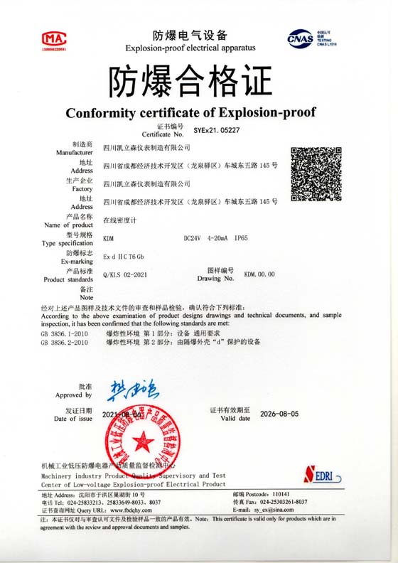 在線密度計防爆認證